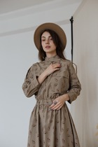 Платье оливковое с мимозами