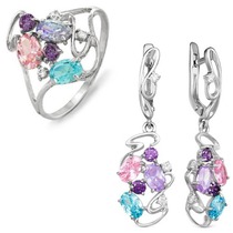 Металл: серебро; Проба: 925; Тип вставки (камня): фианиты; Цвет вставок: микс; Вес: 1.2 г— Описание у На сайте поставщика
