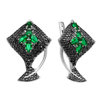 Вес: 3.6 г; Проба: 925; Металл: серебро; Тип вставки (камня): фианиты; Цвет вставок: черный, зеленый— Описание у На сайте поставщика