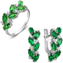 Проба: 925; Металл: серебро; Тип вставки (камня): фианиты; Цвет вставок: зеленый; Вес: 3.2 г— Описание у На сайте поставщика