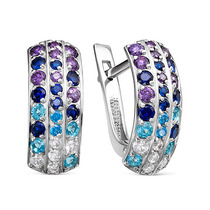 Проба: 925; Металл: серебро; Тип вставки (камня): фианиты; Цвет вставок: синий, фиолетовый, зеленый, б\ц; Вес: 3.4 г