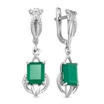 Металл: серебро; Проба: 925; Тип вставки (камня): зеленый агат, фианиты; Вес: 2.3 г