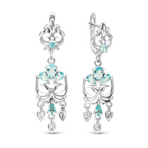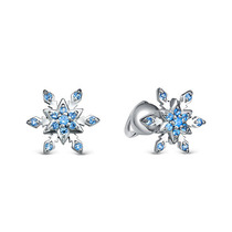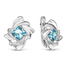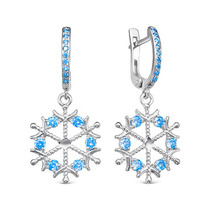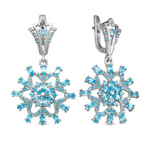Серебряные серьги "Снежинки" с голубыми фианитами - 956