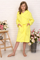 Халат подростковый махровый "Элит" с капюшоном, цвет: 1075-лимон, р. 140/146