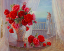 Картина по номерам 40х50 «Красные розы (худ. Дандорф О.)»