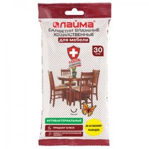 Салфетки влажные хозяйственные ЛАЙМА "ДЛЯ МЕБЕЛИ", антибактериальные, 30 штук, 6