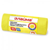 Мешки для раздельного сбора мусора 60 л ЖЕЛТЫЕ, рулон 20 шт., ПНД, 10 мкм, 58х68