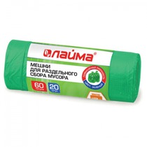Мешки для раздельного сбора мусора 60 л ЗЕЛЕНЫЕ, рулон 20 шт., ПНД, 10 мкм, 58х6