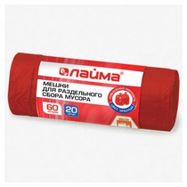 Мешки для раздельного сбора мусора 60 л КРАСНЫЕ, рулон 20 шт., ПНД, 10 мкм, 58х6
