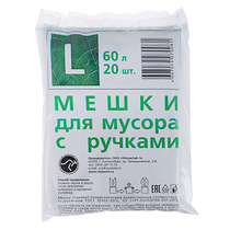Мешки для мусора с ручками 60л, 20шт, 10 микрон