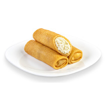 Состав: блинчик, начинка: сыр российский, ветчина вареная (из мяса птицы), чеснок, перец черный молотый.