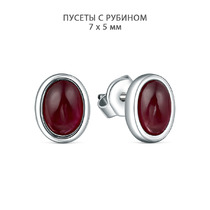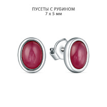 Серьги-пусеты из серебра с рубином родированные 925 пробы GTE-201-SR