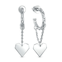 Серьги-продёвки из серебра родированные - Сердца (длина всего изделия 18 см) 925