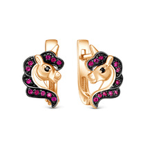 Серьги детские из золочёного серебра с эмалью - Единороги 6-00001зл