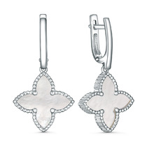 Серьги из серебра с белым перламутром родированные - Четырёхлистники 221-10-116-