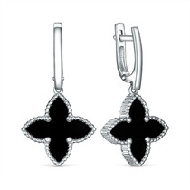 Серьги из серебра с ониксом родированные - Четырёхлистник 925 пробы 221-10-116р
