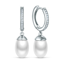 Серьги из серебра с культивированным жемчугом и фианитами родированные 925 пробы