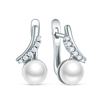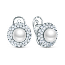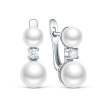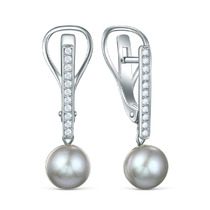 Серьги из серебра с культивированным жемчугом и фианитами родированные 04-702-00