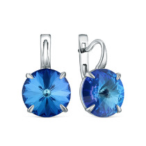 Серьги из серебра с кристаллами премиум Австрия цвета королевский синий родирова