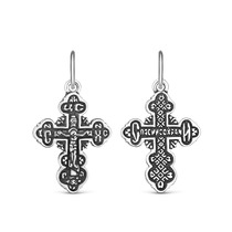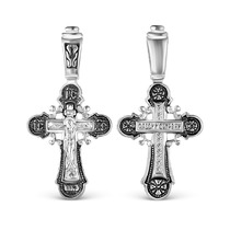 Крест православный из чернёного серебра - Распятие, Николай Чудотворец 3.3 см 92