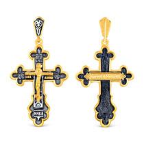 Крест из золочёного серебра с чернением - 7,5 см 925 пробы 3-182чз