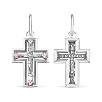 Подвеска Крест из родированного серебра с фианитами 925 пробы п-035р200