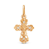 Крест из золочёного серебра с фианитами - 2,9 см 925 пробы 3-086з