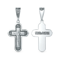 Крест православный из чернёного серебра - Спаси и сохрани, 3,6 см 00-0026-2