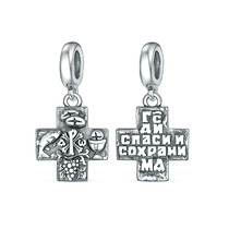 Крест православный из чернёного серебра - Спаси и сохрани, 3,5 см 00-0031-2