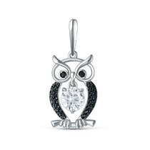 Подвеска из серебра с фианитами родированная - Сова (подвижный фианит) пз0039рч2