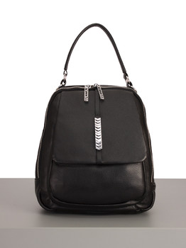 Рюкзак женский выполнен из экокожи. Детали: 2 регулируемые ручки по 102 см. соединяющиеся в одну при помощи молнии, 2 маленькие ручки для держания в руке. Внутри изделия: 1 основное отделение на молнии, 2 открытых кармана, 1 карман для мобильного телефона, 1 карман на молнии. Снаружи изделия: 1 карман на молнии спереди, 1 карман на молнии на оборотной стороне. Брендированная подкладка из хлопка. Металлическая брендированная фурнитура серебристого цвета. В комплекте фирменный пыльник.