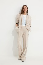 Жакет прямого силуэта из букле на трикотажной основе. Воротник-стойка. Центральная застежка на крючки. Рукав со спущенной линией плеча. По переду прорезные карманы. Жакет на подкладке.