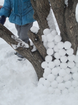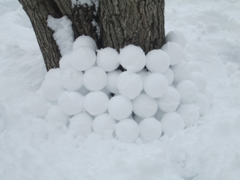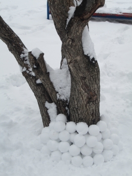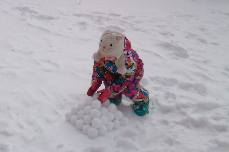 снег действительно приятным для лепки был лишь несколько раз за эту зиму. да и мы то болели, то спешили, то ленились фотографировать, но суть не в этом. снежколеп мы таскали в любой мороз с собой. приноровиться удавалось к любым условиям.