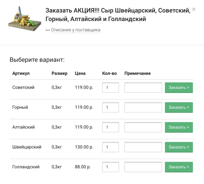 Полный каталог товаров для заказа можно увидеть на сайте поставщика: