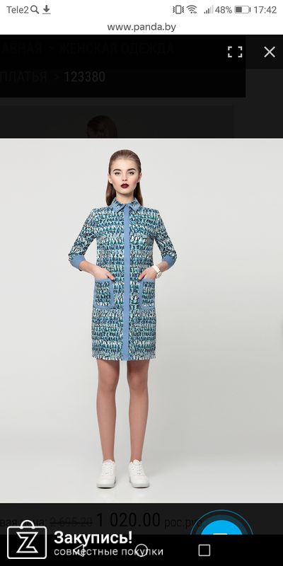 Заказывала ПЛАТЬЕ ЖЕНСКОЕ (ПА 323380) п. 158333, ПРИО ***** ПАНДА НОВАЯ КОЛЛЕКЦИЯ Беларусь №7. Размер идет в размер, чуть маломерит, но сел нормально.Материал плотный х/б, что радует. На работе все спросили где брала? Понравилось. Стоит этих денег.