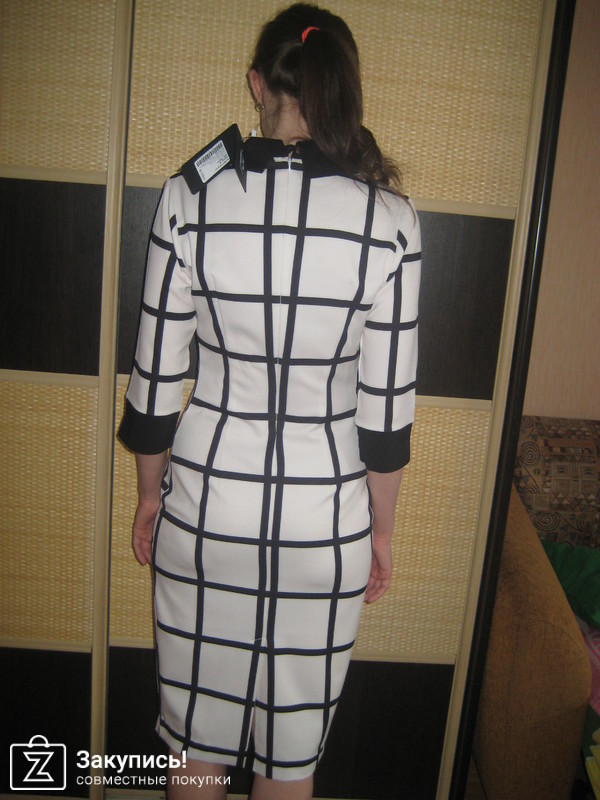 Брала на ОГ96, ОБ 101 48 размер. Трикотаж мягкий, достаточно плотный, без подклада. Немного грубая Молния на спине, топорщит. Цвет более темный, чем на фото, контраст больше цветовой. Очень удобный, комфортный, за счёт тянущегося трикотажа. В целом очень довольна, брала на официоз, но ещё подумаю. Не очень вписывается в деловой стиль, хотя я люблю выделиться. Оксана, спасибо за закупку!