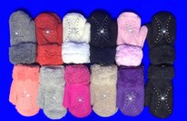 Варежки подростковые внутри с мехом на девочку со стразами