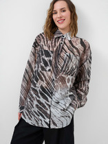 Блузка прямого силуэта из трикотажного полотна, с отложным воротником на стойке. Спереди цельнокроеная планка с застежкой на пуговицы. Длинный втачной рукав, внизу с притачной манжетой и застежкой на пуговицу. По спинке кокетка со складкой.