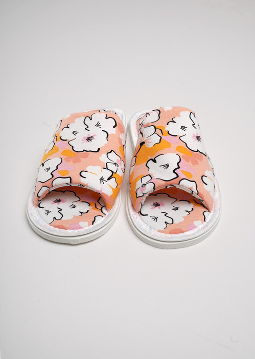 Домашние тапочки с открытым носом из хлопкового трикотажного полотна с эластаном, нашивка на стелке. Толстая подошва.