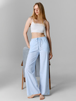 Брюки прямые свободные, посадка средня. Пояс цельнокроеный с эластичной тесьмой внутри (внутр. 20RV). С внешней стороны пояса пробиты петли и вставлен шнур-бейка из основного полотна. По верхнему срезу отделка из кружева 2.4см (L156-2.4, арт. JS00017-2.4). Брюки с боковыми швами. Нижние срезы обработаны швом вподгибку с закрытым срезом.