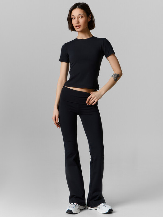Комплект состоит из джемпера и брюк. Брюки-клеш полуприлегающего силуэта, плотно облегающие бедра и ноги до колен. Пояс с отворотом, отрезной, широкий. Нижние срезы обработаны швом вподгибку.