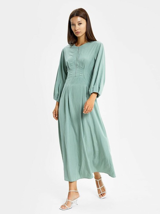 Рукав втачной, длиной 3/4. По низу рукава заложены складки для создания обьема. Перед платья с застрочеными складками.