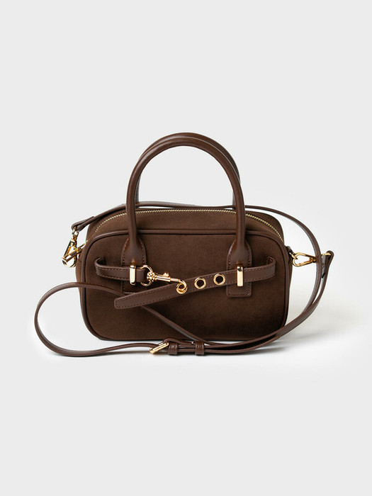 Небольшая сумка трендовой формы выполнена из искусственной замши с отделкой из искусственной кожи. Сумка имеет две ручки и плечевой регулируемый ремень. Ее можно носить как в руках, так и как кросс-боди. Сумка имеет одно отделение. Внутри имеется небольшой карман на молнии. Параметры сумки: ширина - 24см, высота - 9 см, глубина - 13 см