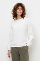 Объемный свитшот из двухцветного трикотажного футера. Внутренняя сторона изделия представлена в натуральном цвете хлопка, внешняя в нежно-розовом. За счет использования крашенной пряжи, данный вид полотна прошел минимальную обработку, что придало изделию мягкость и шелковистость.