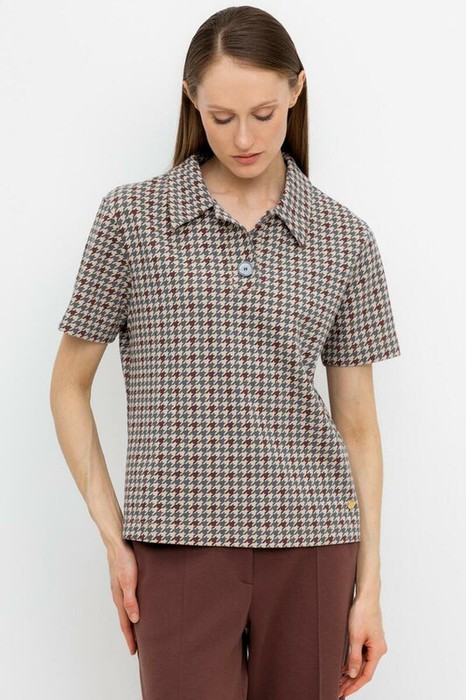 Джемпер поло с короткими рукавами из интерлока с V-образным вырезом и декоративной пуговицей.
