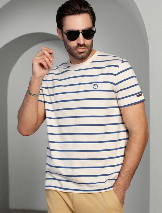 Совместные покупки Омск Мужская одежда Футболки — 06.04 Vilatte Футболка из премиального хлопка с эластаном U49.024 экрю-св.синий