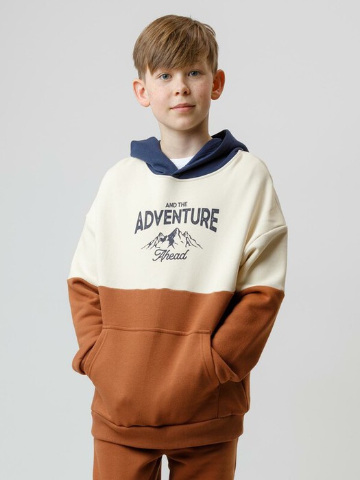 Худи с капюшоном для мальчика из тёплого футера с начёсом. Пояс и манжеты выполнены из мягкого эластичного трикотажа. Спереди удобный и вместительный карман-кенгуру. Худи сохраняет форму и стойкий цвет после многочисленных стирок и идеально подходит на каждый день. Оригинальный принт выполнен из стойких текстильных гипоаллергенных красителей. Все трикотажные полотна производятся в соответствии с нормами швейцарского сертификата ЭкоТекс.
