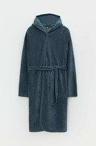 Халат на молнии с капюшоном. Изготовлен из мягкого махрового полотна, произведённого из натурального хлопка. В капюшоне подклад из высококачественного гладкого трикотажа супрем. Края обработаны эластичным кантом. Все трикотажные полотна производятся в соответствии с нормами швейцарского сертификата ЭкоТекс.