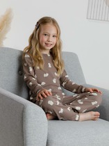 Трикотажная пижама из натурального хлопка. Футболка с короткими рукавами с принтом. У брюк эластичный пояс на резинке. Оригинальные принт и набивка выполнены из стойких, гипоаллергенных текстильных красителей. Пижама сохраняет цвет и форму после многократных стирок. Все трикотажные полотна производятся в соответсвии с нормами Швейцарского сертификата ЭкоТекс.
