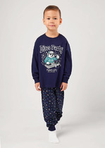 Пижама для мальчика из натурального хлопка. Джемпер с длинными втачными рукавами и прямые брюки с эластичной резинкой в поясе. Оригинальная набивка и принт выполнены из стойких текстильных гипоаллергенных красителей. Изделие сохраняет цвет и форму после многократных стирок. Все трикотажные полотна производятся в соответствии с нормами швейцарского сертификата ЭкоТекс.
